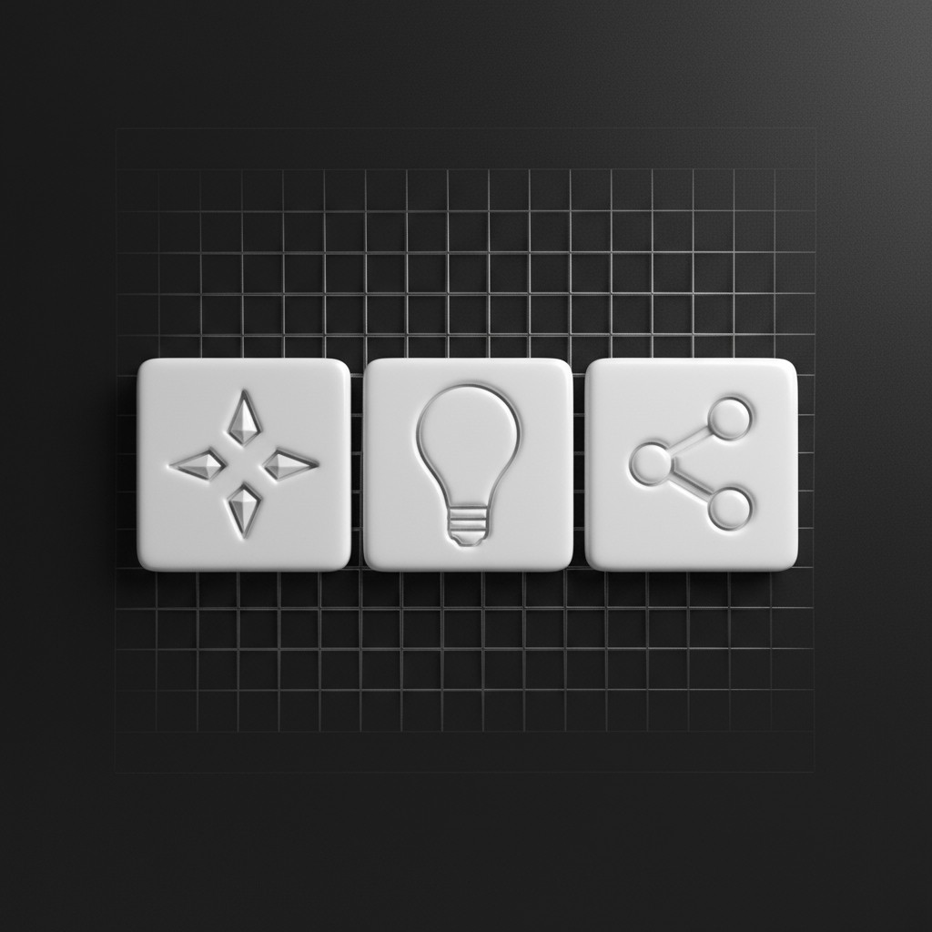 discover → architect → build → launch & optimize. weekly sprints, monthly planning, a living roadmap, and clear owners. every sprint ships assets and logs learnings for the next.